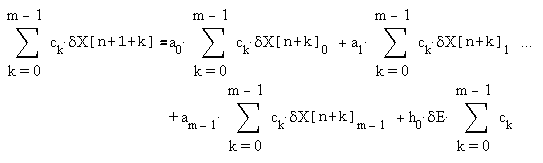 δX[n+1+m]=A·δX[n+m]+h0·δE.