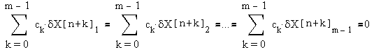 Умножим, аналогично тому, как это было сделано в предыдущем случае, каждое значение формулы (8), при k=n...n+m-1, на некоторый коэффициент ck, и суммируем полученные выражения: