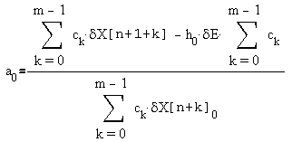 | δX[k+1]=a0·δX[k]0+a1·δX[k]1+...+am-1·δX[k]m-1+h0·δE, | (8) |